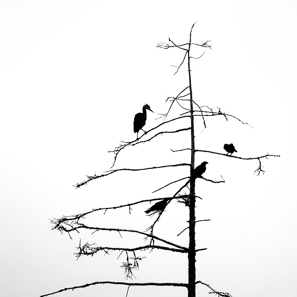 A tree, 3 crows, 1 heron - in Prince George, BC